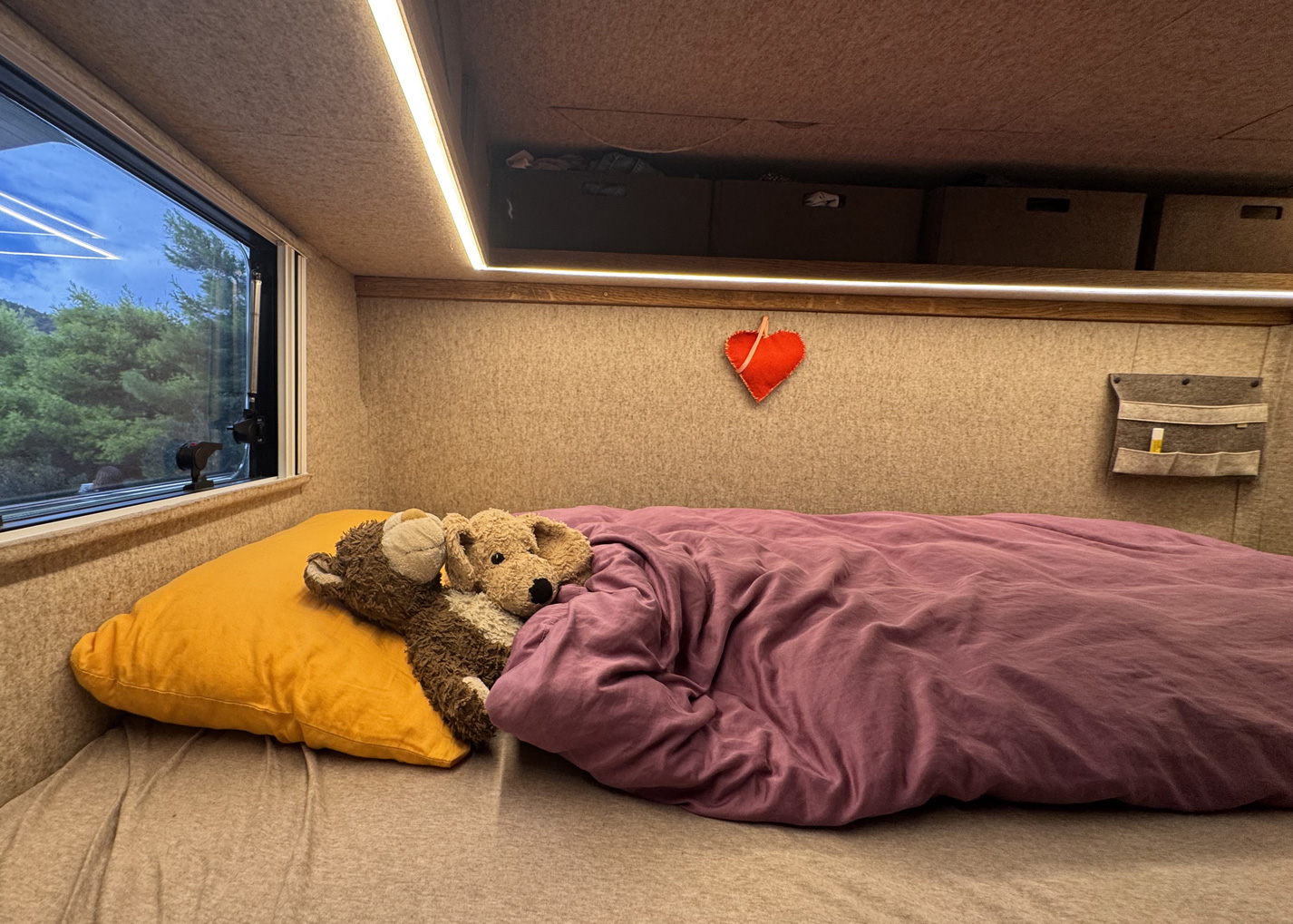 Mini-camping-car avec feutre naturel et compagnon animalier